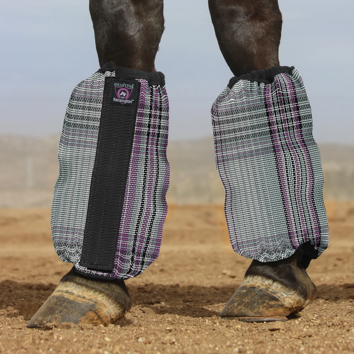 Kensington's Protective Bubble Fly Boots feature a long hook and loop closure that runs vertically down the front of the boot and a light fleece trim for extra comfort around the t…