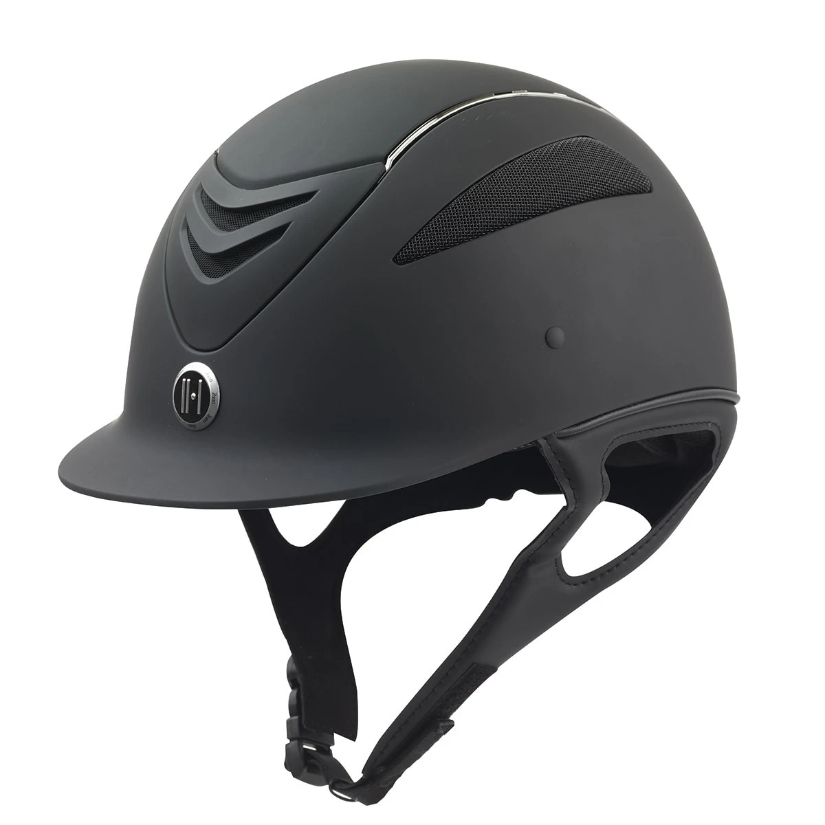 The Defender Chrome Stripe Riding Helmet features matte Polycarbonate and Advanced ABS Composite outer shell; injection molded shell design; washable quick-dry, moisture wicking, a…